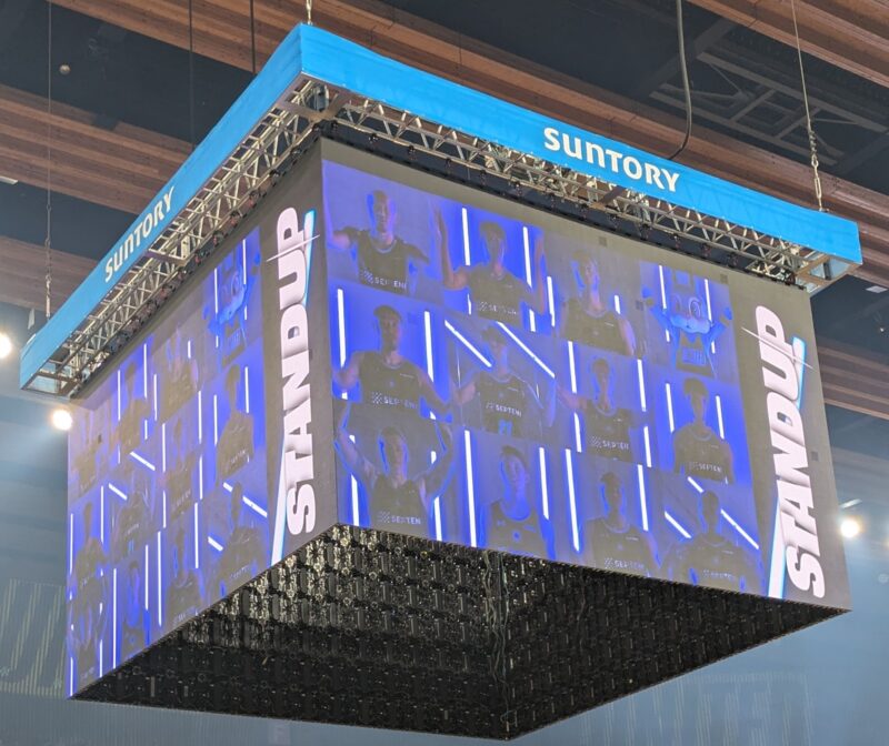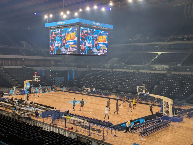 もう一つは、はじめに数回クラップを行ったあとに、両手上下させる「わっしょい」ポーズを繰り返すものです。ずっと「わっしょい」ポーズを繰り返すため、四十肩のおやじぃーずにはなかなかハードな応援でした。「わっしょい」のポーズを行っているときに、「わっしょい!」と声出しをした方が良いのかどうか、有明アリーナ(メイン)は広すぎて周りのブースターの様子が分からないので、次回以降に確認です(^^)v