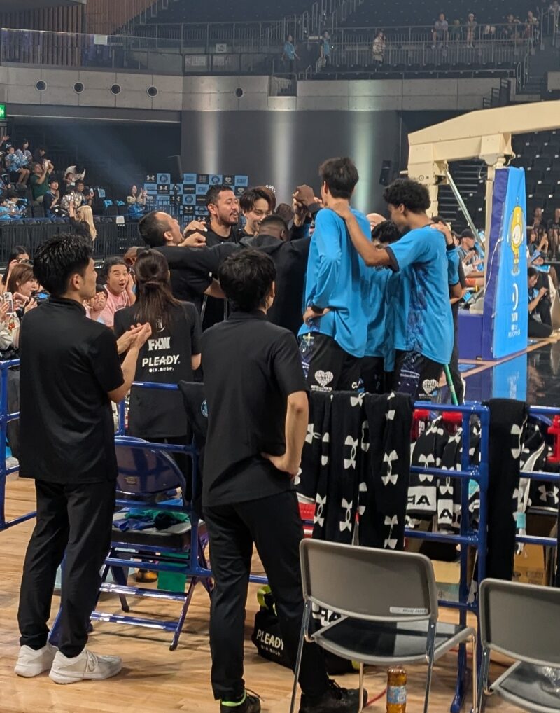 大友選手、そして宮田GMも含めて円陣を組む光景は、昨シーズン、上田選手が骨折で戦線を離脱したときの状況を彷彿させました!チームメンバーが変わっても、TUBCの源は変わっていない、そんな姿をみるだけで、試合前からなんだか嬉しくなってしまいました😊