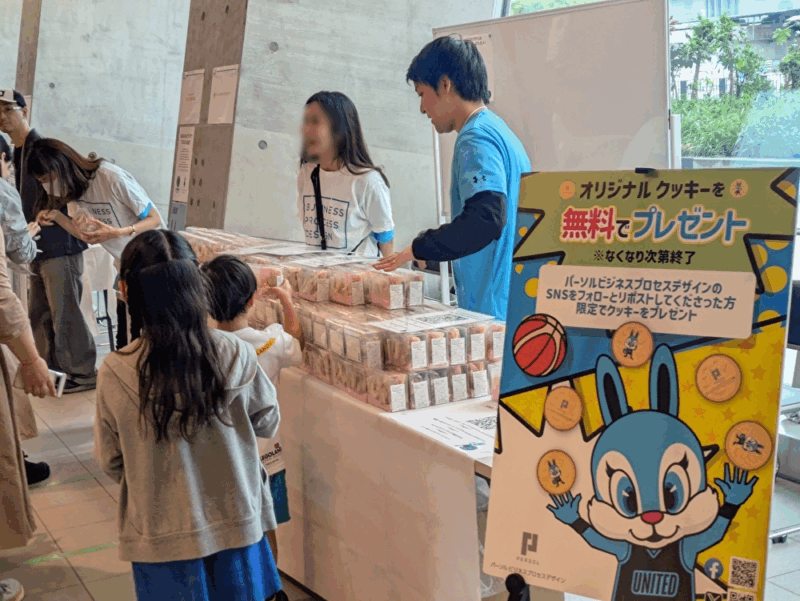 また、パートナーブースエリアには、たくさんの企業等が出展されていました。パーソナルビジネスプロセスデザインのブースでは、今節もクッキーのプレゼントを行っていました。こちらで配布されるユナイトのデザインのクッキーはクォリティーが高く、いつもありがたく頂いています!